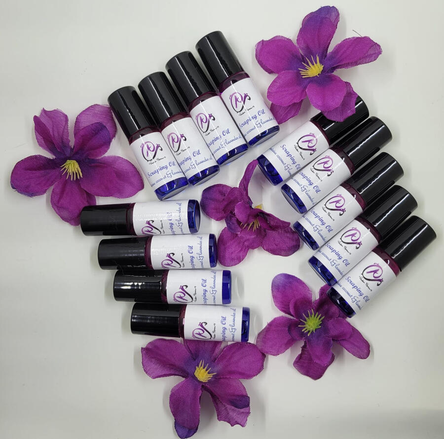 Once you are ready to scrape off your henna, preferably after 8-12 hours, we recommend scraping it off with Ambre Henna's Henna Scraping Oil. To do so, roll the oil all over the dried henna and rub it. Via a butter knife or similar tool, slowly start scraping the henna off. As the henna paste contains fructose, it is prone to overly sticking to skin. Consisting organic coconut oil and lavender essential oil, the scraping oil aids in loosening this henna, while also aiding to darken the fresh stain entirely.